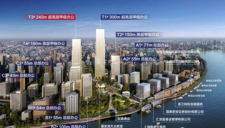 随着外滩金融集聚带对发展空间的更新拓展,以董家渡周边区域为代表的空间载体迅速崛起,为集聚各类优质金融资源提供了有力的硬件支撑。作为旗舰级核心载体的绿地外滩中心,集聚了一批总部型机构,包括建信人寿、中国人保、海通证券、上海银行、国海证券等一批银行、证券、保险系高能级金融机构,以及东浩兰生集团等高能级总部型机构。