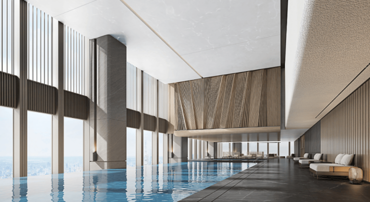 或者是奢华的大平层住宅,或者是超高规格的商务办公空间;这是过往几十年的解答。 打破界线,全方位激发对城市塔尖生活形态的想象;这是时代外滩在今天给出的另一个答案。在外滩地标绿地外滩中心T1, 38F、40F-45F的天幕行宫,以一种塔尖群体向往的融合式生活方式,诠释外滩滨江恒产的价值高度。