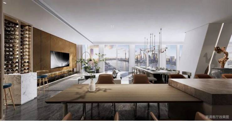 江岸会客厅,天幕级视野,以城市天际为背景,上演一场圈层的思想会晤;多功能娱乐影音室,打破空间界限,多元场景演绎,尽释多元商务想象。