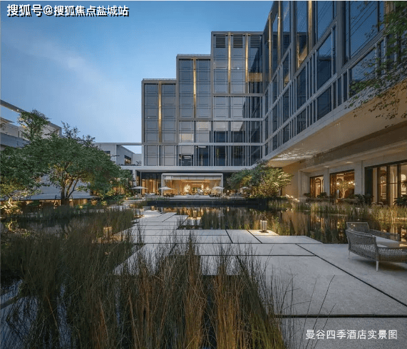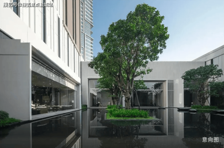 庭园整体布局将精致奢华的酒店风,与和谐雅致的立体东方园林交相呼应,通过核心水景连接园区的景观组团,呈现无界流淌、季相分明的都会绿洲。