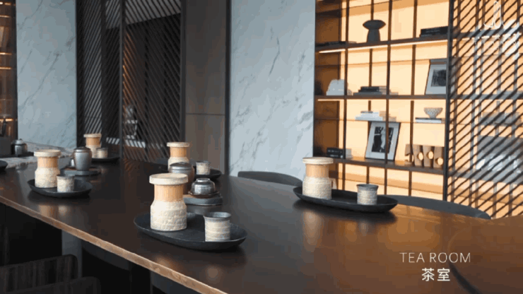 基于人与空间的互动,以及对品味生活的追求、对精神与“唯一性”的重视,通过公区的整体化布局和功能的多元化考量,投射出情境构建下的专属生活方式。商务接待、居家会客、宾客宴请......场景需求融入空间规划,在每个相对独立的体块之间建立出新的关系,又通过空间形态的衍化与连接,蔓延出相互共存的生活场景。