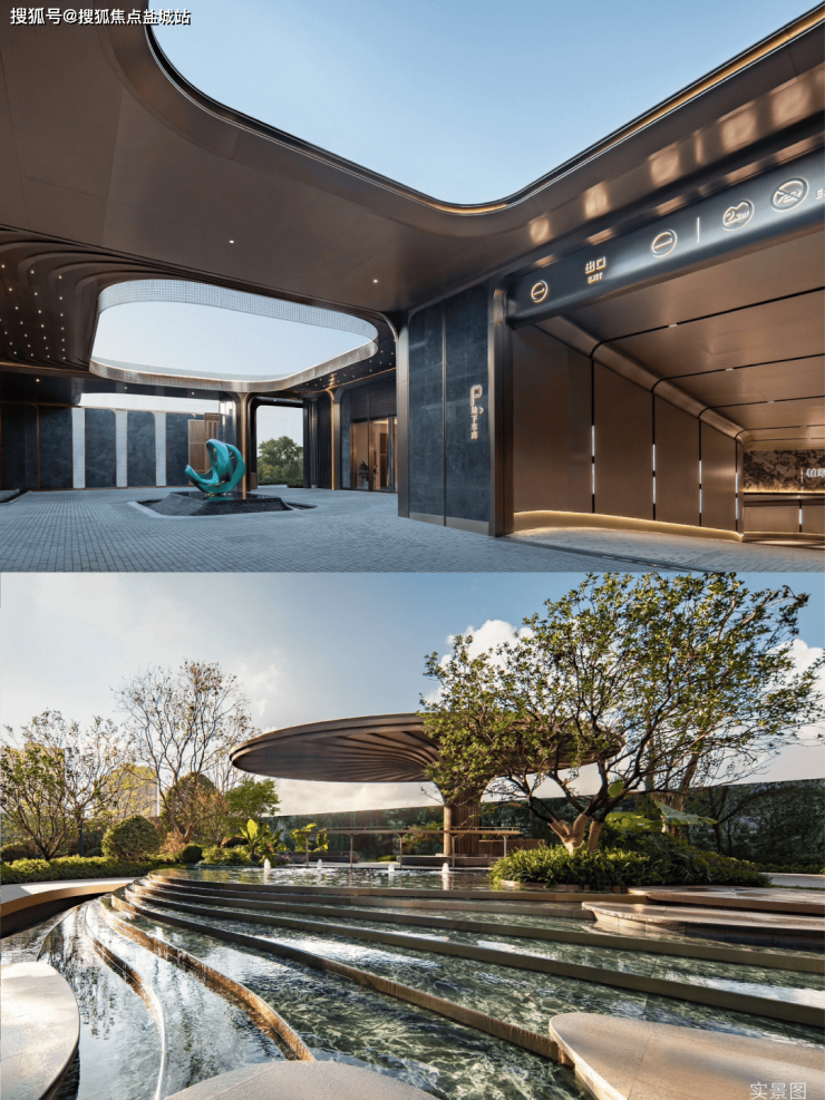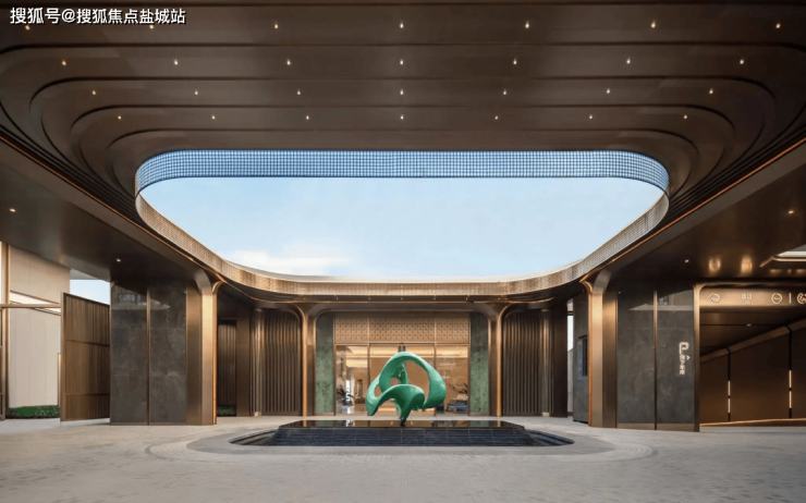 庭院采用一体化设计,融合了4条归家通道、8面别致屏风与1座优雅水景雕塑,精心打造出一幅低密森氧居住画卷,营造出市场上独一无二的高规格生活体验。在材质选择上,两侧以大理石与镂空铝板的巧妙结合,通过双层柏翠造型铝线条的精细错拼,彰显出极致的精致与雅致。