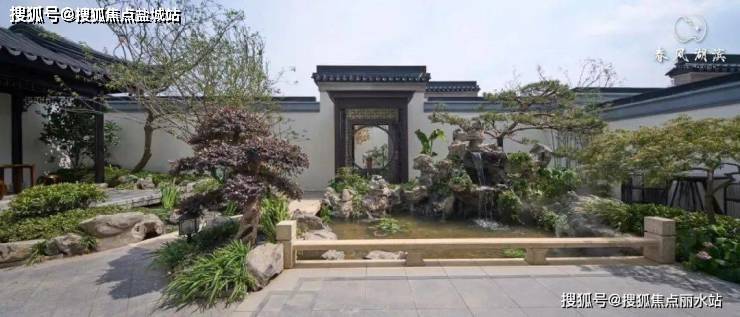 下叠的样板庭院,颇有“归家似游园”的雅韵:院中绿意葱茏,取江南古韵的中式景观亭傲然伫立,折桥、流动的水光、嶙峋的奇石穿插其间,似一处微缩版的“苏式园林”。