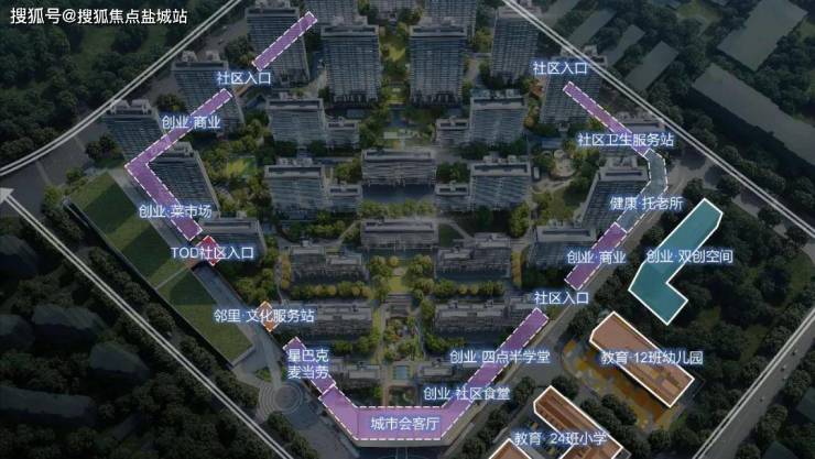 社区底层外围布置菜场、特色店铺、幼教中心、养老机构、创业支持等社区及城市公共服务功能,使城市的生活属性与便利特性得以在社区外围充分实现。