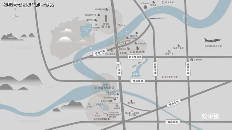 产业:滨萧一体化创智新城,三江创智小镇、V智造产业社区、浙报数字文化创业中心