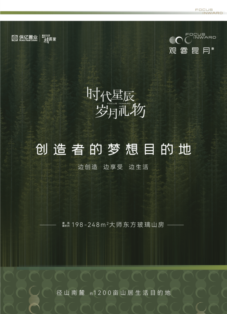 观雲昆月城,臻选杭州同城山水径山南麓贵脉,以群山溪谷为底色,拥揽城西科创大走廊高端配套资源,营造约1200亩中国新山水人居大境,为中国高净值人群营建一个全天候、全域化生活目的地,能满足创造者们全生命周期生活需求。又以东方人居意境的当代重构,采用依山就势之法,将一座座“玻璃山房”自然挥洒于山岭之间,营造一方建筑、山水与心灵的自然合一之境。每一栋皆定制、每一境皆不同,未来山居盛邀时代创造者,观雲揽月。
