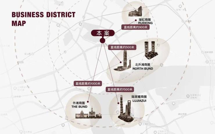 陆家嘴商圈直线距离约1500米;