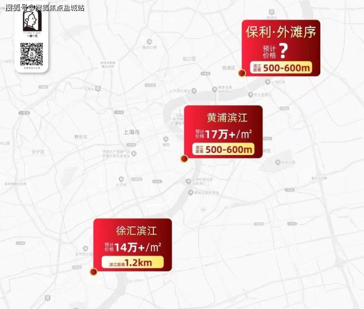 目前同样距离滨江约500m距离的黄浦滨江,新房价格站上了17万+;而在徐汇,距离黄浦江约1.2km的徐滨板块,单价也突破了14万+。