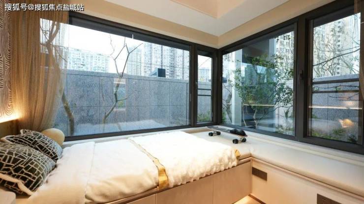 阳台和主卧采用270°的L型环幕设计,主动拥抱更丰富的园林景致。