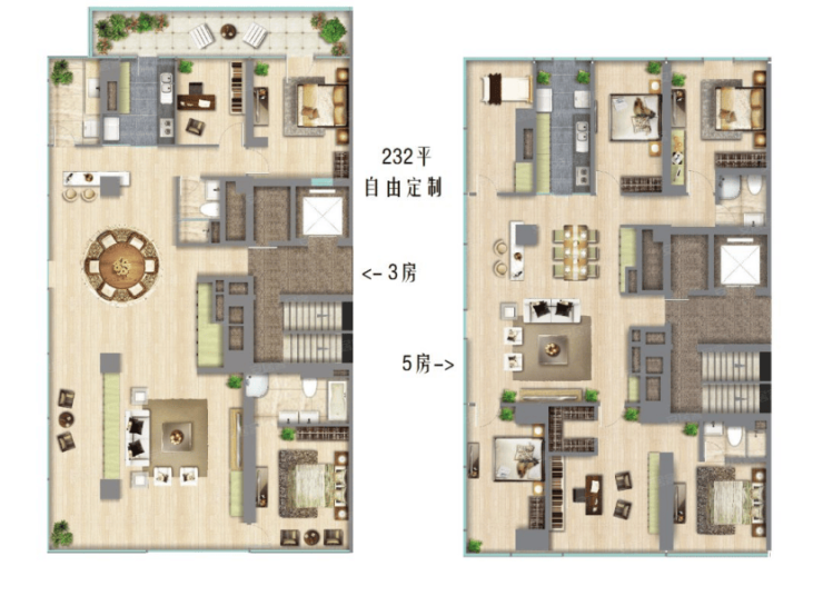只要预算充足,住户可以根据自己的需要随意组合需要的面积。从建筑面积约250-1000㎡可以灵活分割、组合。 从整层贯通的超级大平层,到上下层打通的空中别墅都可以轻松满足。