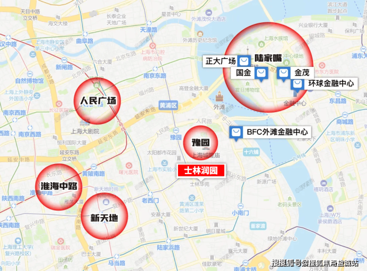 约500米的半径范围内香港名都城、豫园商圈、复兴艺术中心,人民广场、新天地、外滩、南京路步行街都在2km范围,顶级商业环绕。