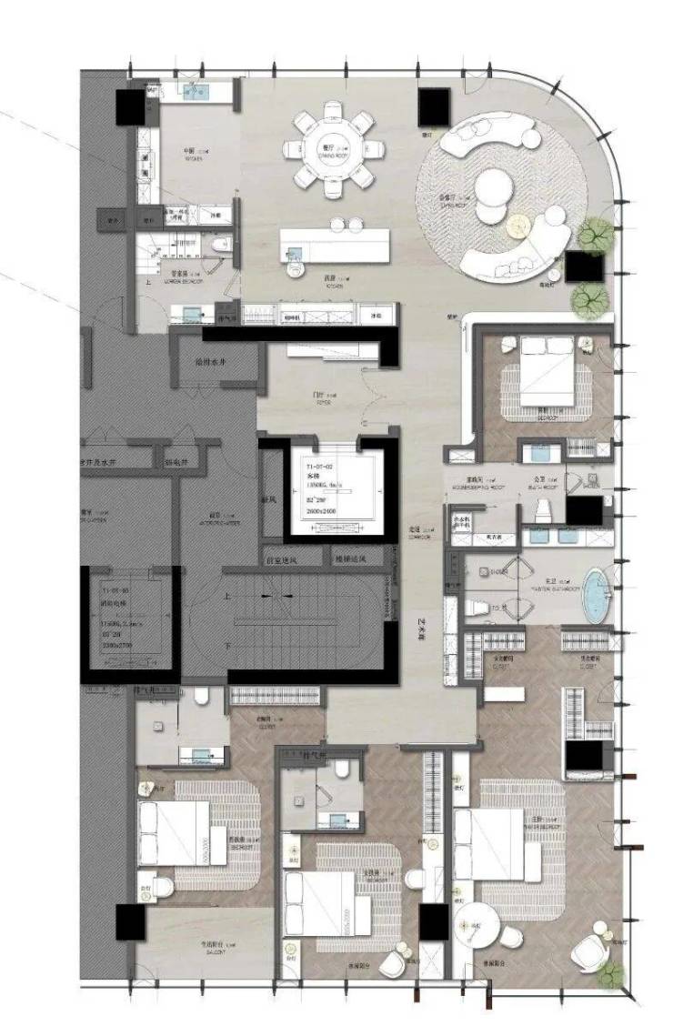东户「望峯」整体营造出现代轻奢度假氛围,以FENDI CASA渗透于空间各个细节之中。88方的超大客餐厅,270度瞰景视野,19米的双面采光,客厅都是L型采光的“无柱转角落地玻璃厅”。每一场轻歌曼舞的派对,背景都带着“H”标的奥体地标群。