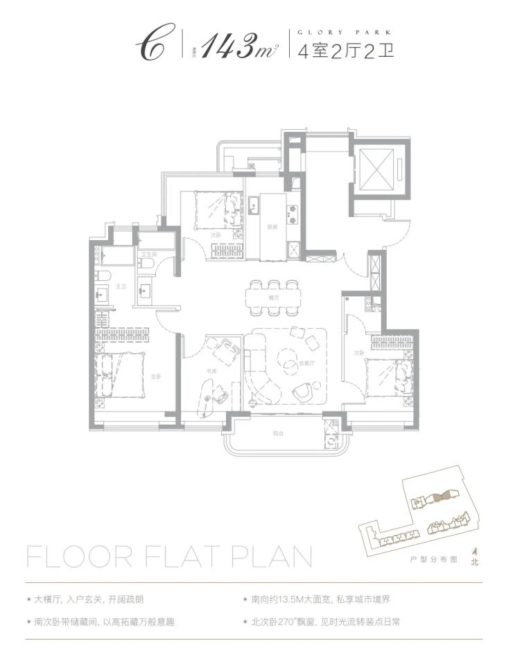 以已经开放样板间的建面约143㎡户型为例: