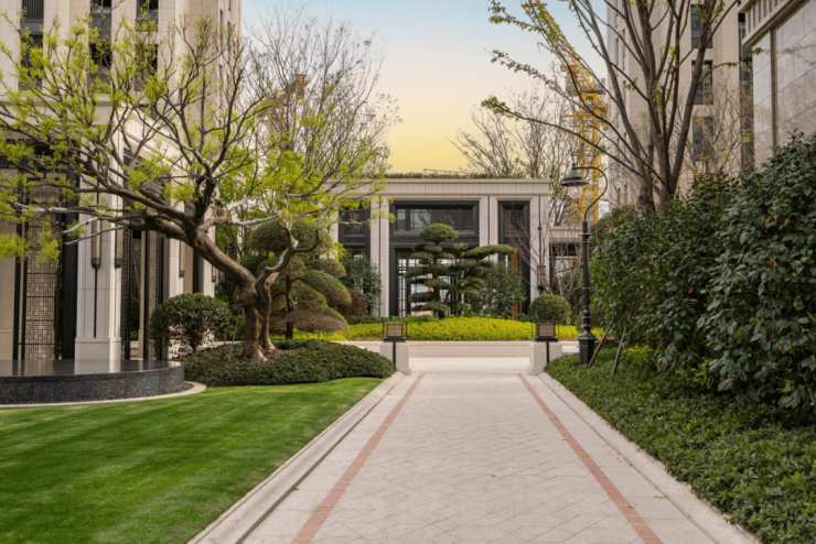 极富仪式感的社区入口、花园会客厅、别致的宅间景观,行走在社区内处处皆景。