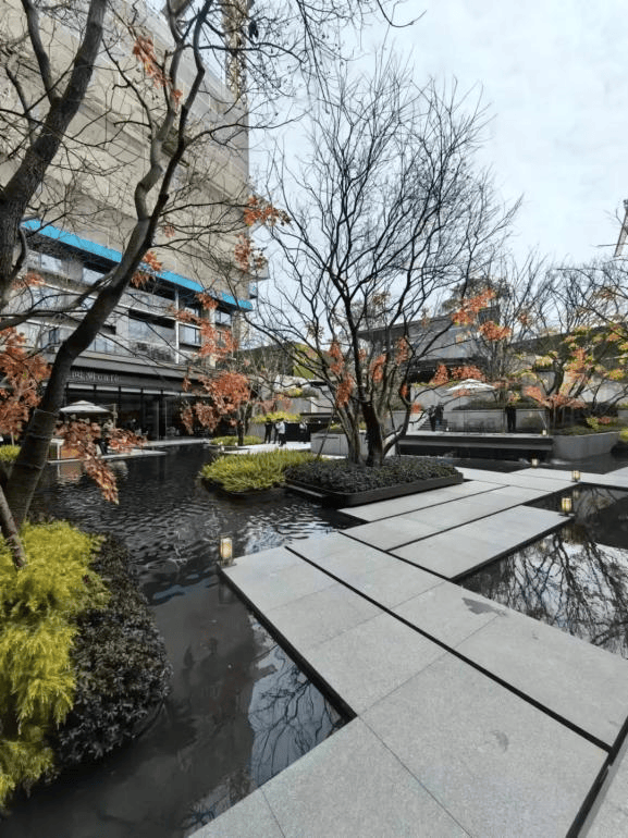 在项目景观设计上由朗道国际景观设计团队操刀(代表作上海融创滨江壹号院、上海万科中兴路一号),从古松江五大浦之一的通波塘上提取灵感,同时以海派水韵为基底,将“循水溯源,浮城鎏金”的设计理念贯穿了整个项目,主打引水入园,让人身临其境、可居可游。