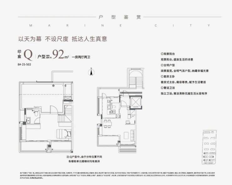 回到户型产品本身,华发·海上都荟丨云间印主推建面约91-122㎡高层瞰景三房及建面约92-142㎡叠加别墅,定位精致刚需、改善居住。