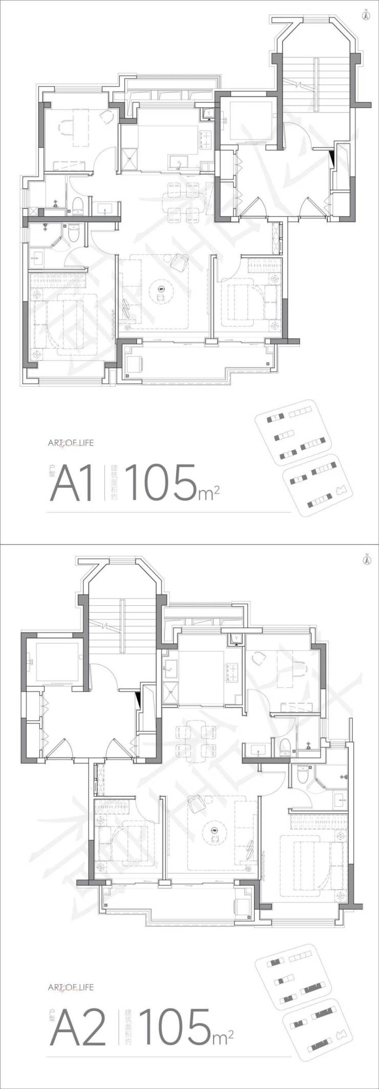 户型,建面约105㎡,三房两厅两卫
