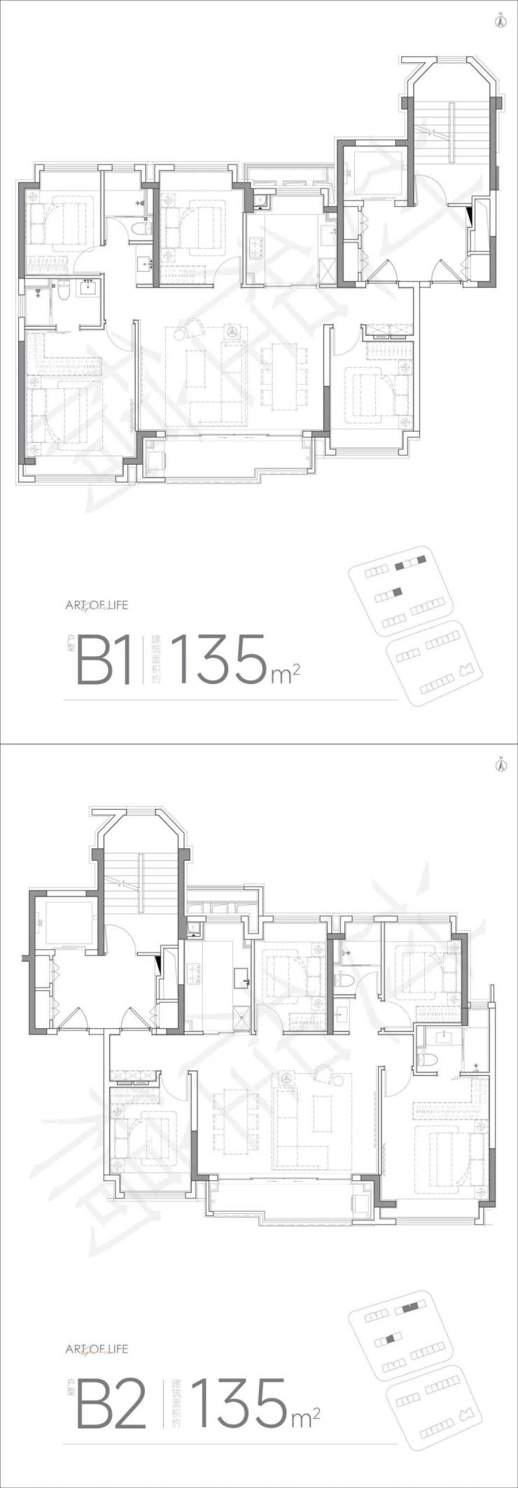 户型,建面约135㎡,四房两厅两卫