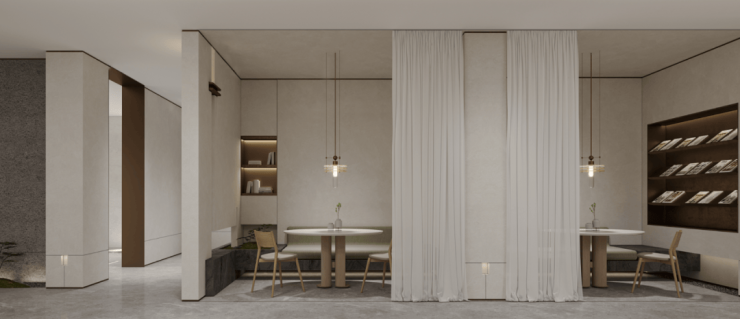 在每一栋建筑的1层,都打造了内容丰富的泛会所空间:儿童书吧、社交茶室、共享办公等不同主题的空间。