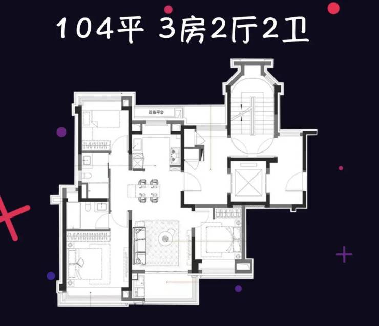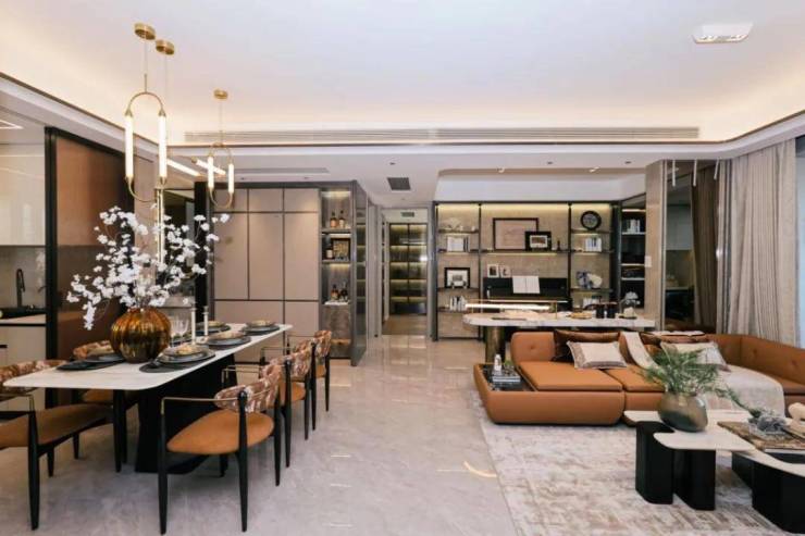 104平的3房2卫空间做了拓展,客厅做了5.5米的竖厅设计,整体会比小户型更舒适,总价可能要接近600万。
