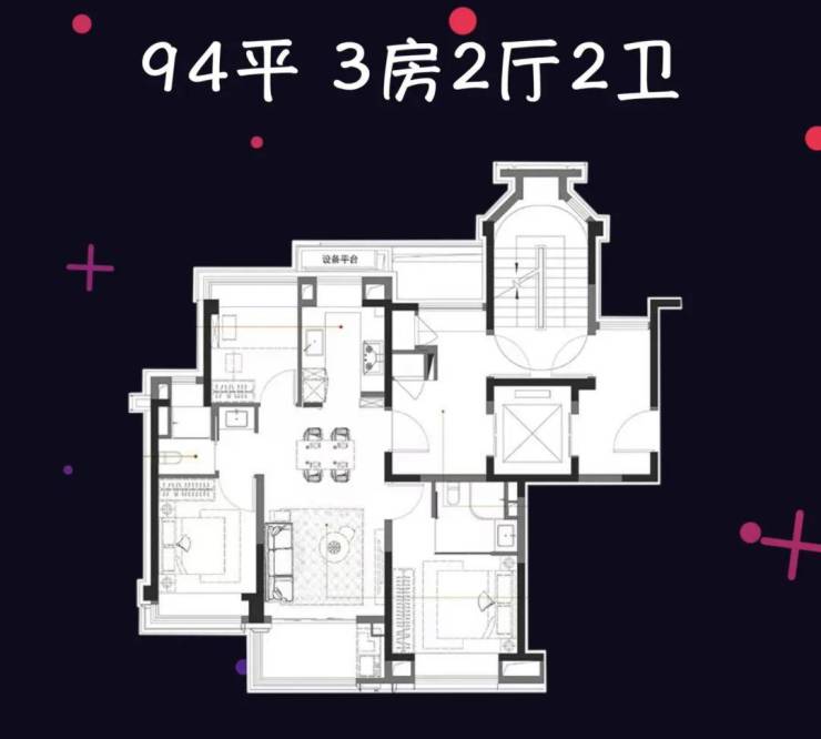 户型方面,94平的3房2卫性价比不错,总价预计500万起步,飞机户型减少了空间浪费,小房弟觉得最大亮点是电梯双开门的设计,独立电梯厅相当于送了门口的面积,半小时市中心的地铁盘中,这个户型还是很能打的。