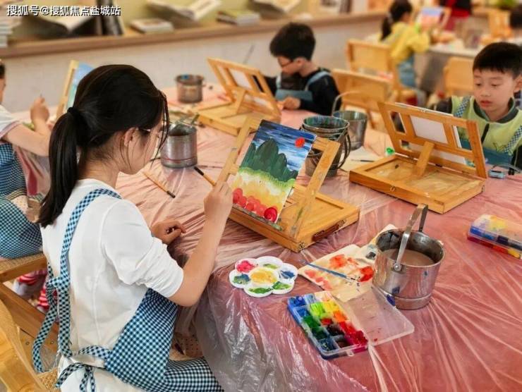 探寻之旅结束后,专业油画老师现场坐镇,为小艺术家们带来了一场细致入微的春日油画课。老师鼓励小朋友们发挥想象,自由创作,面对每一位小艺术家的独特想法,适时给予专业建议。在老师的鼓励下,孩子们纷纷放下顾虑,大胆将脑海中对春天的想象付诸笔端,他们有的画自己想象中的春天,有的将自己所见到的春天绘于画布,一幅幅充满童趣与生机的春日油画跃然纸上。