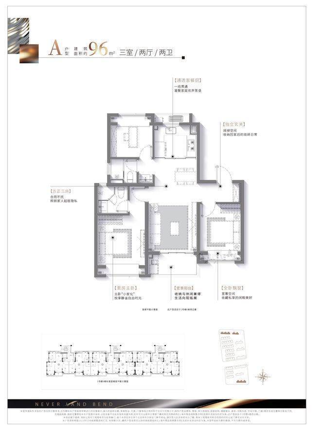 建面约96㎡户型,性价比极高,是一个低总价上车3房的优质选择。