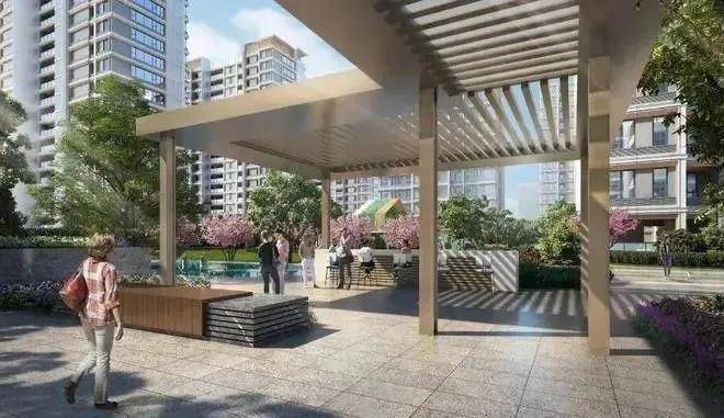 【风雨连廊】配备休闲座椅,为业主遮风挡雨,营造更加尊贵的生活体验。