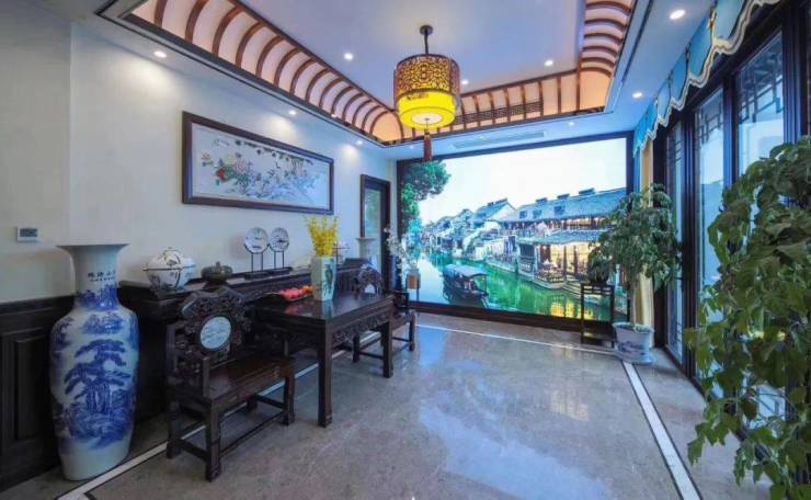 作为本土房企中港集团打造的最高端序列产品,西湖院子请到了多家知名中式建筑设计院参与,以苏州网师园为灵感,在最能体现中式建筑精髓的门斗、房梁、椽子等关键性部位,斥重金引入非洲进口红木,搭配精致的花雕,尽显中式建筑的至高美学。