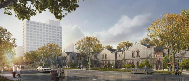 立面设计上,项目还原了 上海海派风格,同时使用老砖、老瓦、老石箍等保留构件,更加贴近场地历史,延续传统历史建筑风貌。