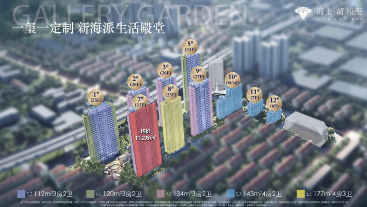 可售住宅达到17万方,容积率3.12,由10栋6-33层的洋房+高层组成,规划了835套住宅,主力户型112-177平3-4房,入门就是1200万起步。
