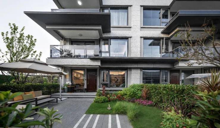 外立面采用大量铝板,结合大玻璃幕墙,形成超大窗墙比的进阶墅品