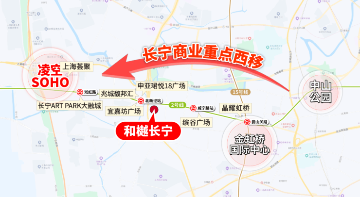 随着中山公园发展渐趋成熟,长宁区的发展重心西移,仅是金虹桥国际中心,就有拼多多全球总部、三星、宝马、康宝莱等135家企业,其中世界500强企业就有8家。2022年,金虹桥国际中心成为继上海恒隆广场、上海国金中心之后,上海第三幢税收突破百亿的商务楼宇;2024年,其税收规模更是攀升至178亿元 ,经济带动能力十分强劲。