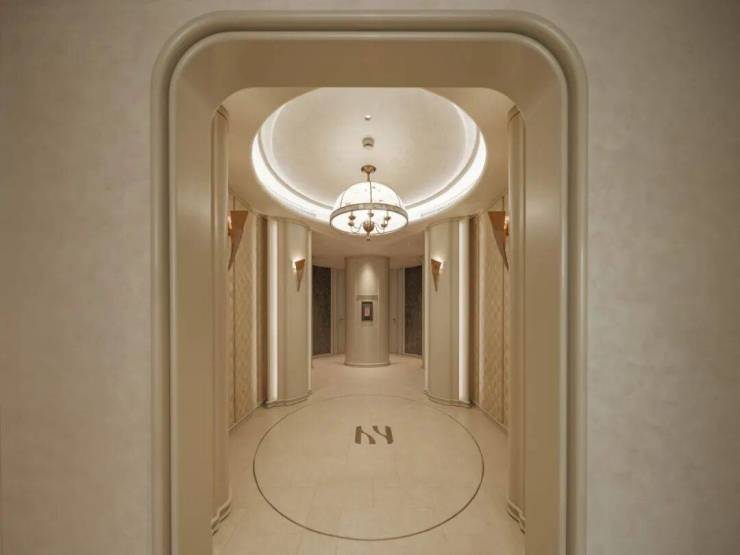 地下大堂,则以温润的白玉石材营造沉浸式归家体验。精奢车库的车行道地面采用水磨石、主体车道全吊顶设计,每个车位上方还都有LED环绕灯吊顶,让平凡的日常场景成为尊崇身份的暗语。