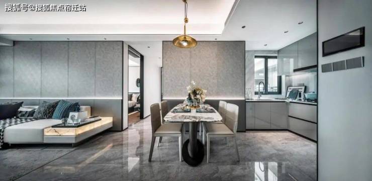 客厅、餐厅、厨房一体化设计,实现丰富有趣的家庭互动体验,与孩子肆意玩乐,一家人欢聚共饮,都浓缩在这一方天地。