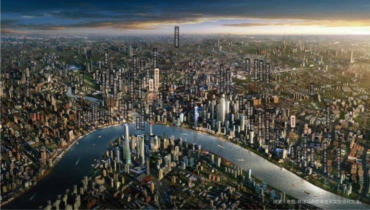 苏州河第一天际线:规划2栋300米以上、2栋200米以上和数栋150米以上的摩天楼,包括约320米地标级超甲级办公、瑰丽酒店;