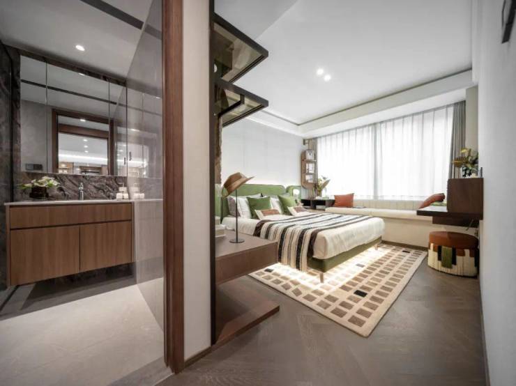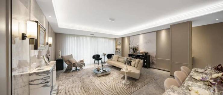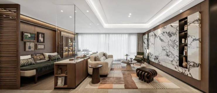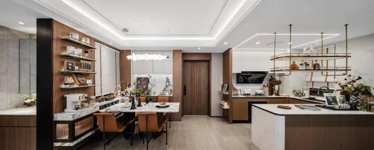 严选124种主材、82种室内材料,涵纳墙布、皮革、不锈钢、木饰面、玻璃、大理石等,在众多材质与化繁为简的手法碰撞中,“繁花”的既视感,早已扑面而来。这已不单单是精致,更是让人看不出的精装,呈现空间“低调的奢华”。