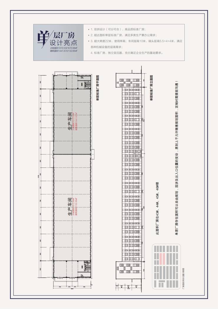 消防等级:丁戊类,预留丙类条件