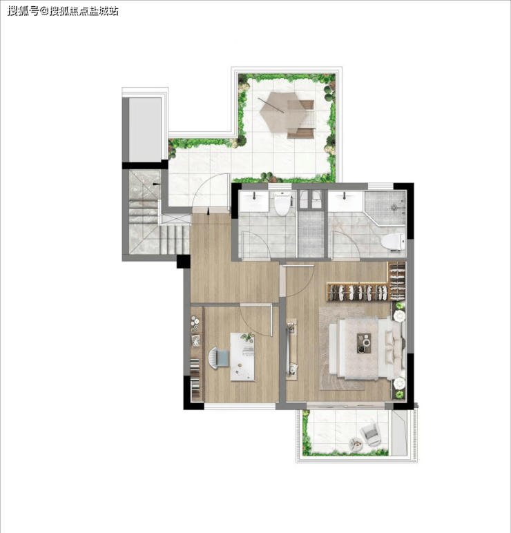 产品设计上打造了高层和叠加两种产品:主力面积为建面约86-99㎡瞰景高层;建面约135-150㎡宽境叠拼;还有建面约135-150㎡奢适大平层。