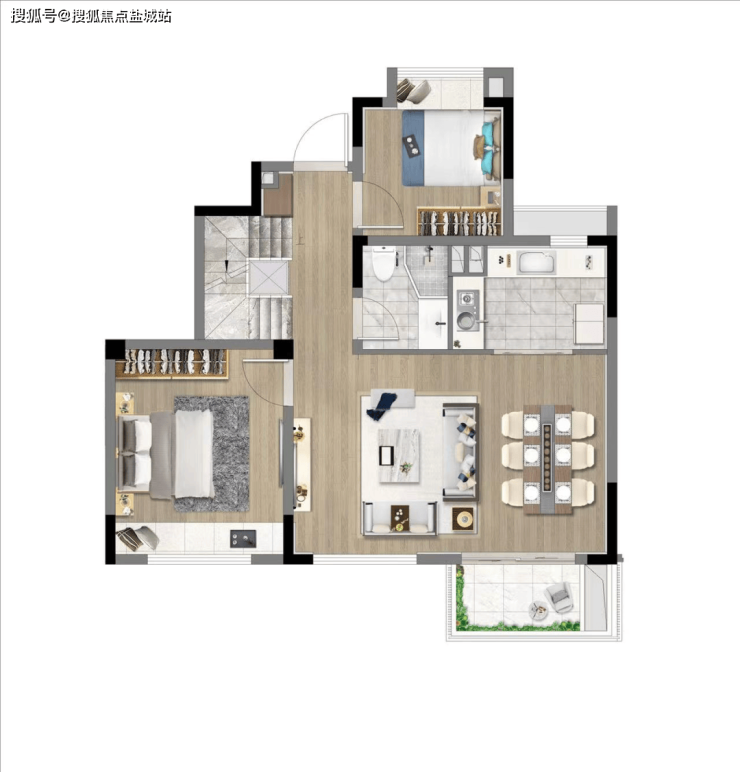 南北通透格局方正,动静分区,三开间朝南,所有卧室均带飘窗,在无形中扩大空间尺度,让阳光和景观全面渗透。植入LDK一体化理念,开放式厨房,打破界限思维,有效利用空间,增加生活的互动性。