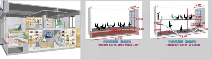 【商铺层高】3.2-4.95米,部分可下挖1.05-1.2米(层高6.15米可做两层)