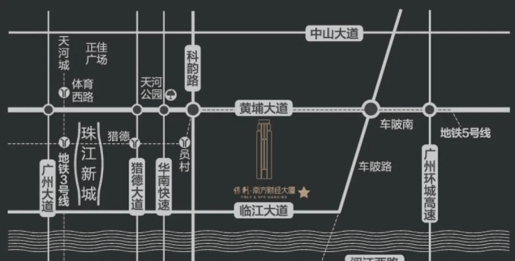 【2条地铁:地铁4&5号线】:已通车,距离4&5号线车陂南地铁站直线距离700m,5站即达珠江新城;