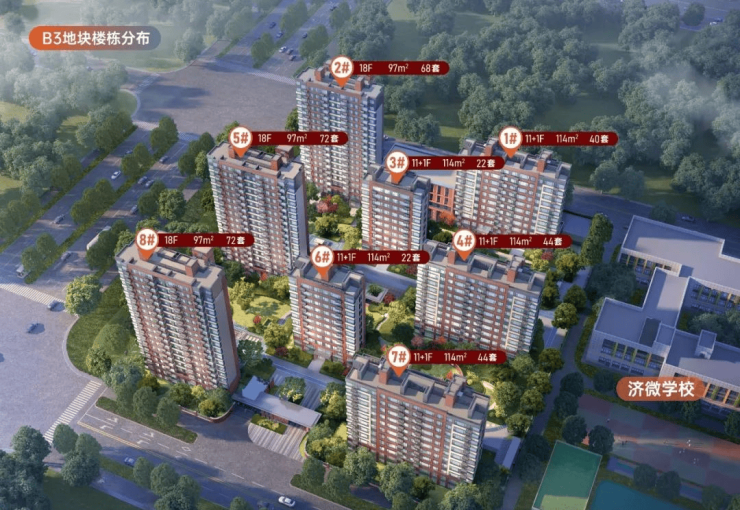 【品质洋房】片区唯一洋房住区,容积率2.1-2.4,居住舒适度高。星级社区归家大堂,体验专属济西青年的归家仪式感。