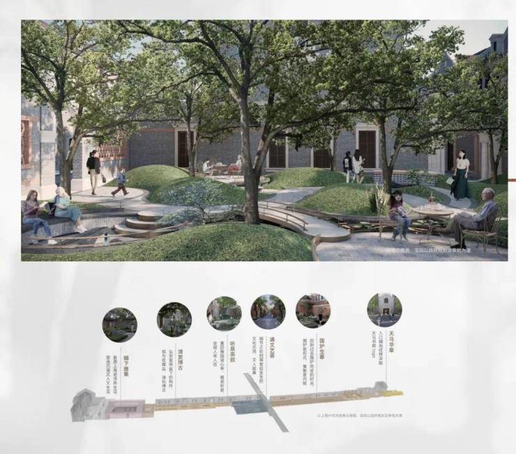 梳理行列式里弄肌理,社区植入海派文化记忆节点,打造蜿蜒曲折的次弄,结合小乔和花径,营造出别致丰富的生活活动空间。