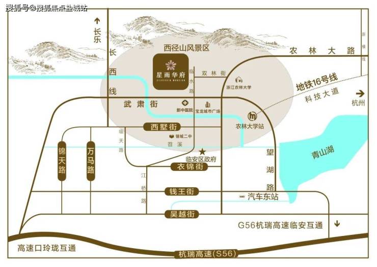 临安雨润·星雨华府, 位于杭州市临安区锦北板块,背依西径山脉,得天独厚自然景观资源,直线距离农林大学东湖校区约400米、宝龙商业广场约900米,3公里内地铁16号线农林大学站、锦城二中、新中医院等医、食、住、行、学配套醇熟,繁华与自然兼得。