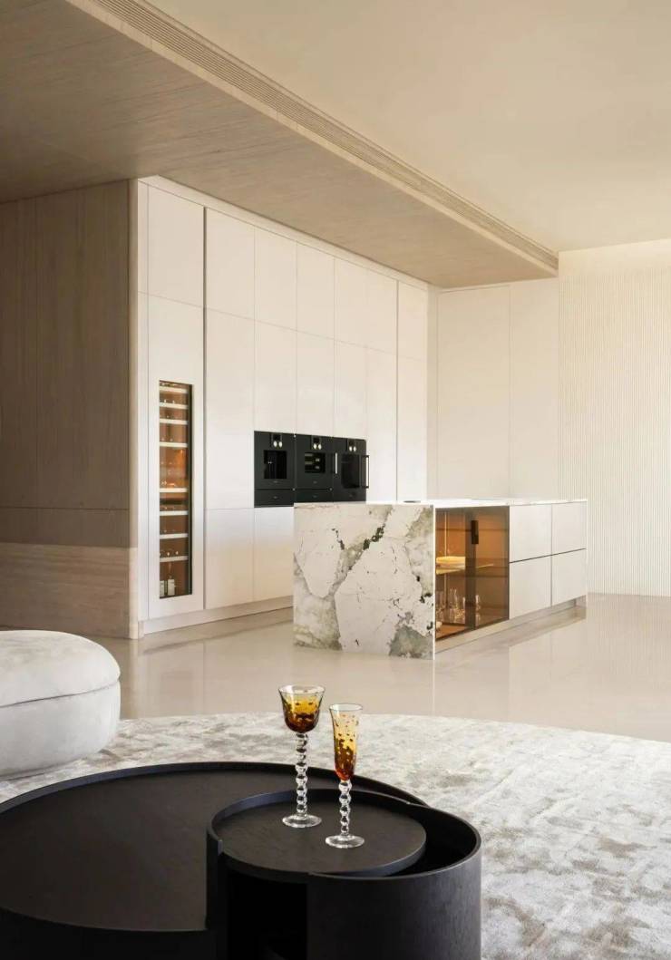 整體營造出現代輕奢度假氛圍,以FENDI CASA滲透於空間各個細節之中。88方的超大客餐廳,270度瞰景視野,19米的雙面採光,客廳都是L型採光的“無柱轉角落地玻璃廳”。每一場輕歌曼舞的派對,背景都帶著“H”標的奧體地標群。