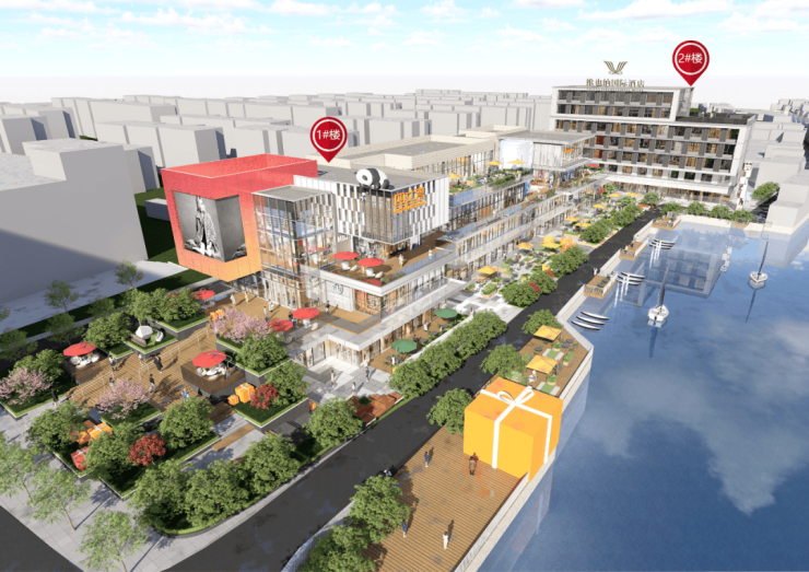 【产品类型】1-4层滨水商业街区+6层酒店(已签约维也纳国际酒店)