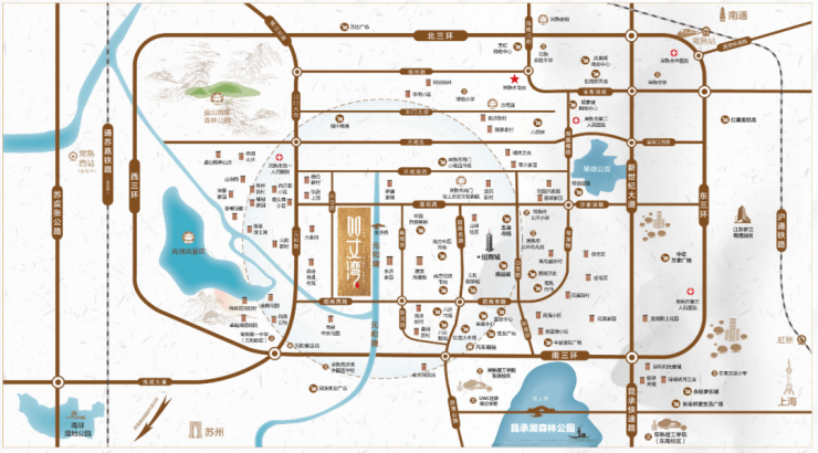项目比邻全国著名的集采购、批发、零售于一体常熟招商城片区,交通四通八达,便捷连通新老城区。对外通过三环、昆承快速路、苏虞张公路等快速到达上海、苏州、南通等周边城市。
