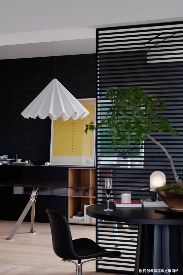 同时客厅方面因为房子四周都是落地窗,虽然我们可以把客厅跟餐厅放在一起,做一个100平米以上的超大客餐厅出来,但设计做久了,表面的浮华已不是内心的追求了,空间的尺度和人之间的温度感才是最终的标尺。所以选择了把空间隔开,不同功能空间之间既有关联,又有自己独特而细微的变化。把空间适当的做小,反而是一种选择。