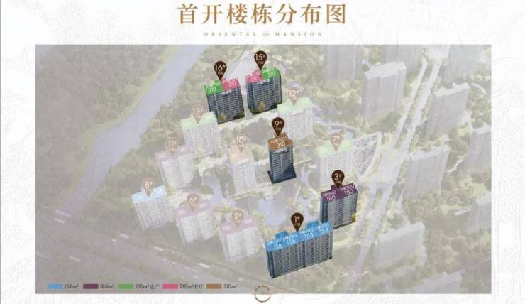 5.产品类型:南区规划13栋建面约158㎡、180㎡、210㎡、310㎡世家人文大宅